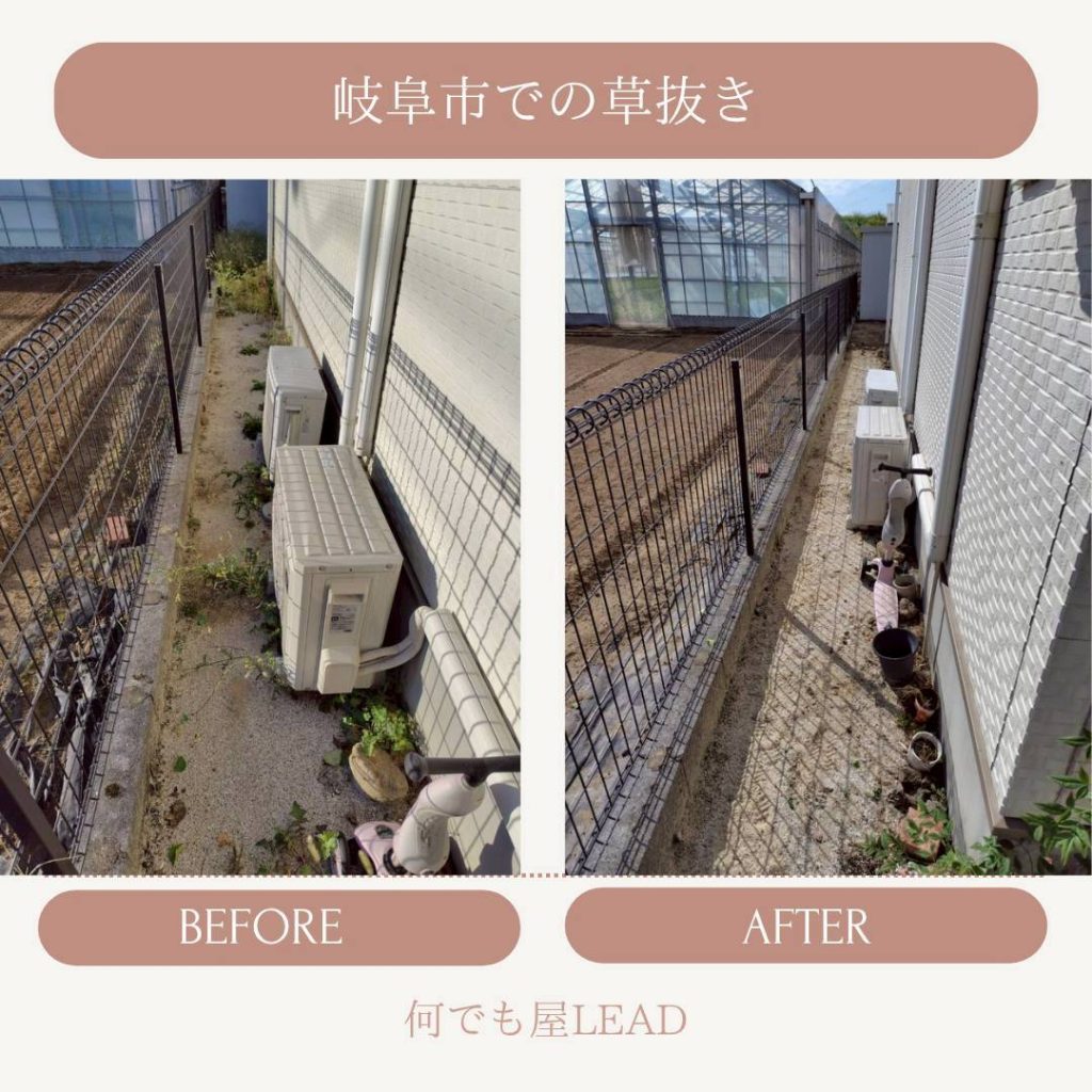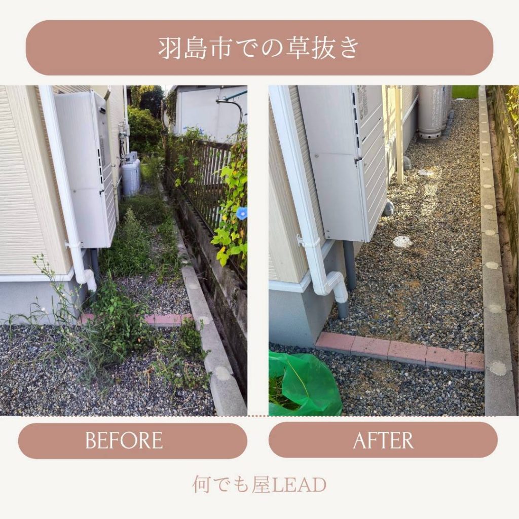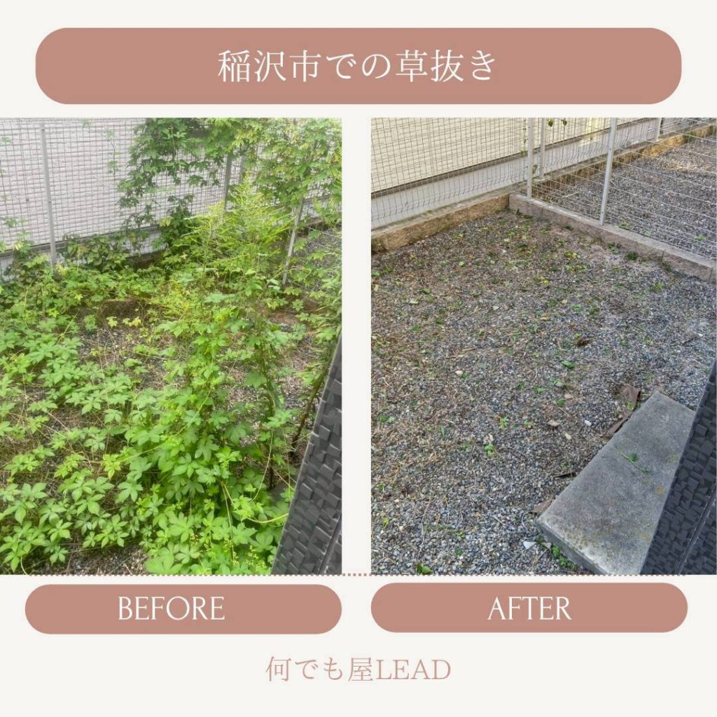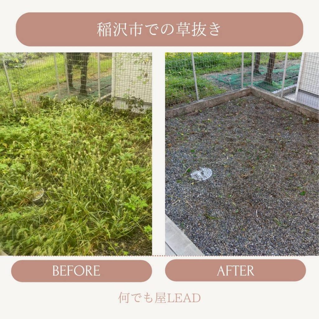 何でも屋(草むしり)実績草むしり代行サービスの実績の一部を紹介させていただきます。料金・よくある質問もくらしのマーケットの詳細ページをご確認ください!その他のご質問は、お問い合わせよりご相談ください。草むしり依頼実績